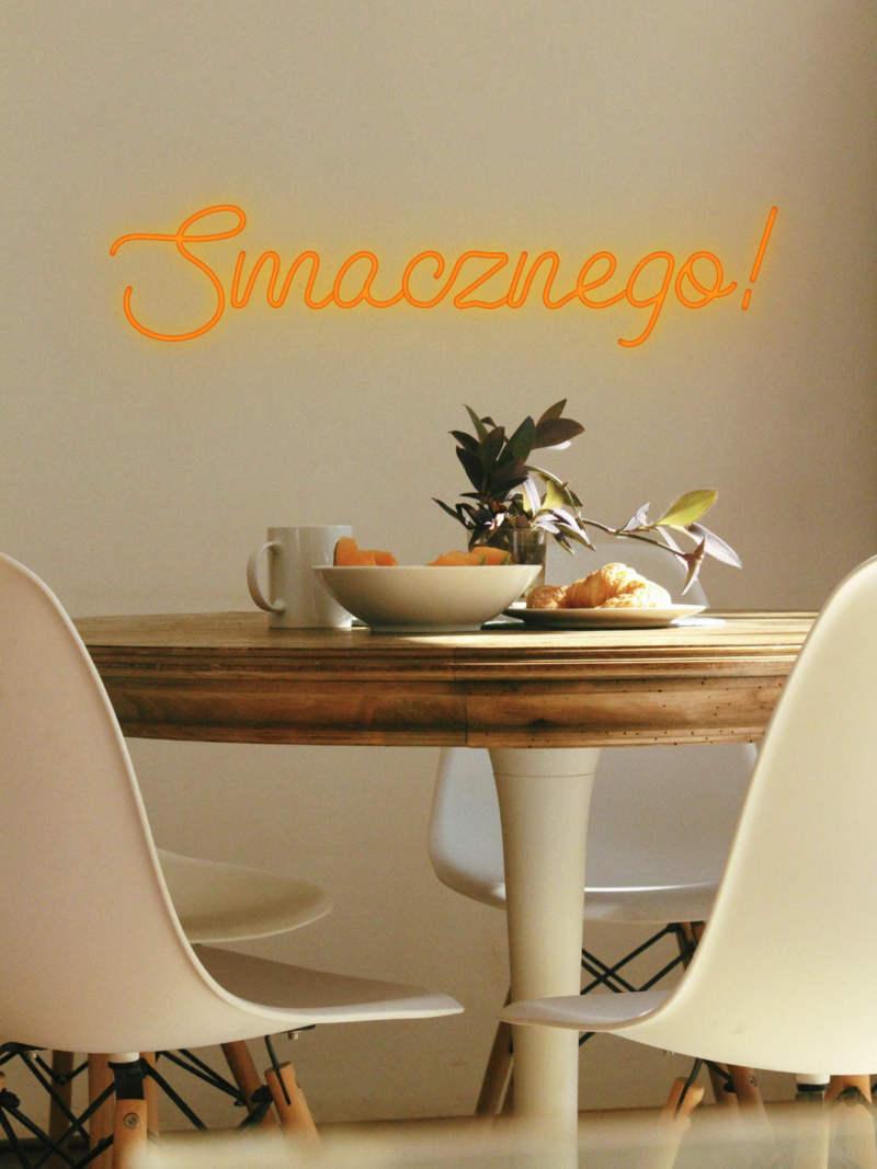This friendly neon sign brings a warm atmosphere and encourages sharing meals with loved ones. Create an atmosphere full of joy and flavor with this stylish accent!