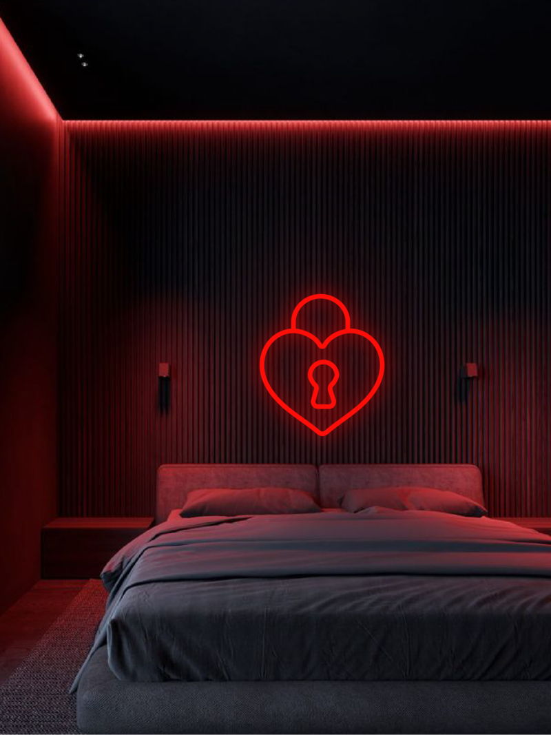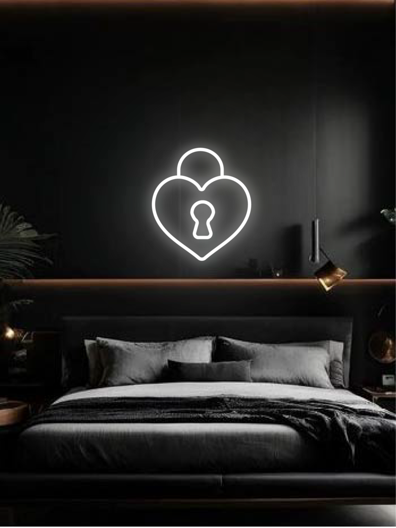 Neon LED Padlock with heart is a symbol of unbreakable love, which will add a unique glow to the interior.