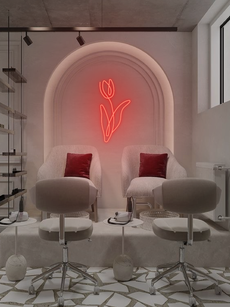 Its simple but striking design blends perfectly with modern decor, giving it a subtle charm. It is an ideal choice for those who appreciate the beauty of flowers in an artistic form. Let the glow of this neon remind you of the subtlety of nature and its timeless beauty!