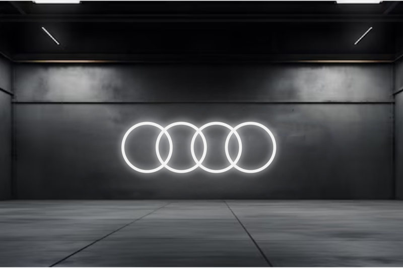 The neon LED Audi logo is a symbol of perfection and German precision.