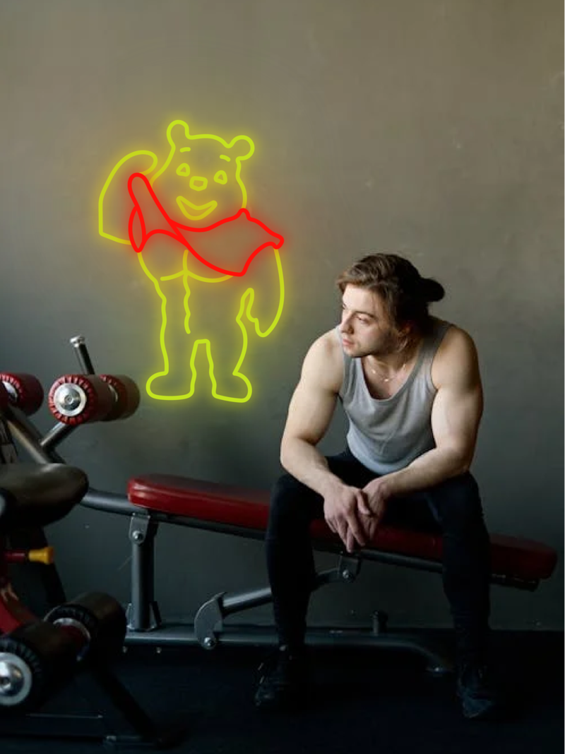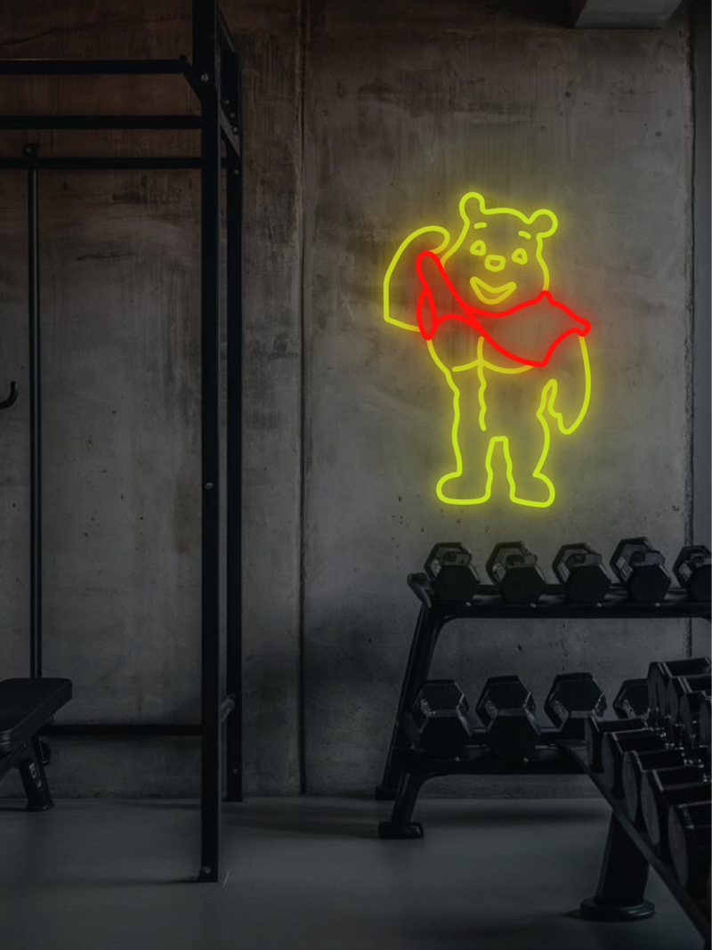 Neon LED Wysportowany Kubuś Puchatek to humorystyczne spojrzenie na ulubionego misia.